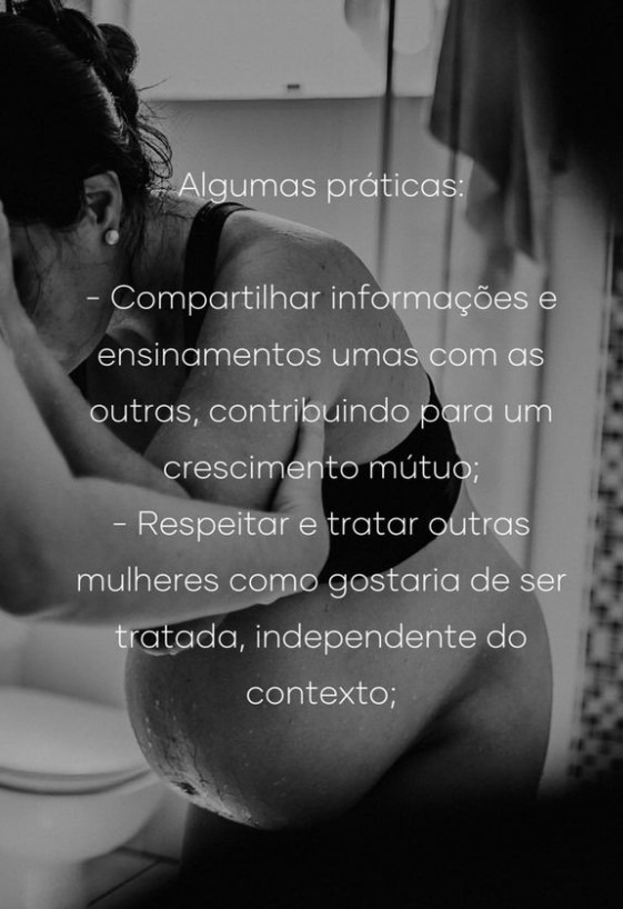 - Respeitar e tratar outras mulheres como gostaria de ser tratada, independente do contexto;